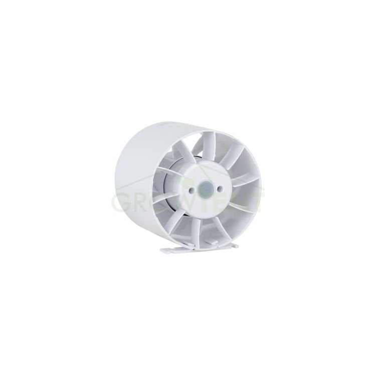 -connection flange/diameter: 100mm (4") -Efficiency 104 m^3/h -Power: 15W -High static pressure -Operating volume level: max 45 dBA -Strong, robust and economical -Vibration-free operation -Material: ABS plastic -White -Fan without power cable, you can buy it separatelyhere. -The fan has a mounting foot The fan can be adjusted with the speed controller available here.