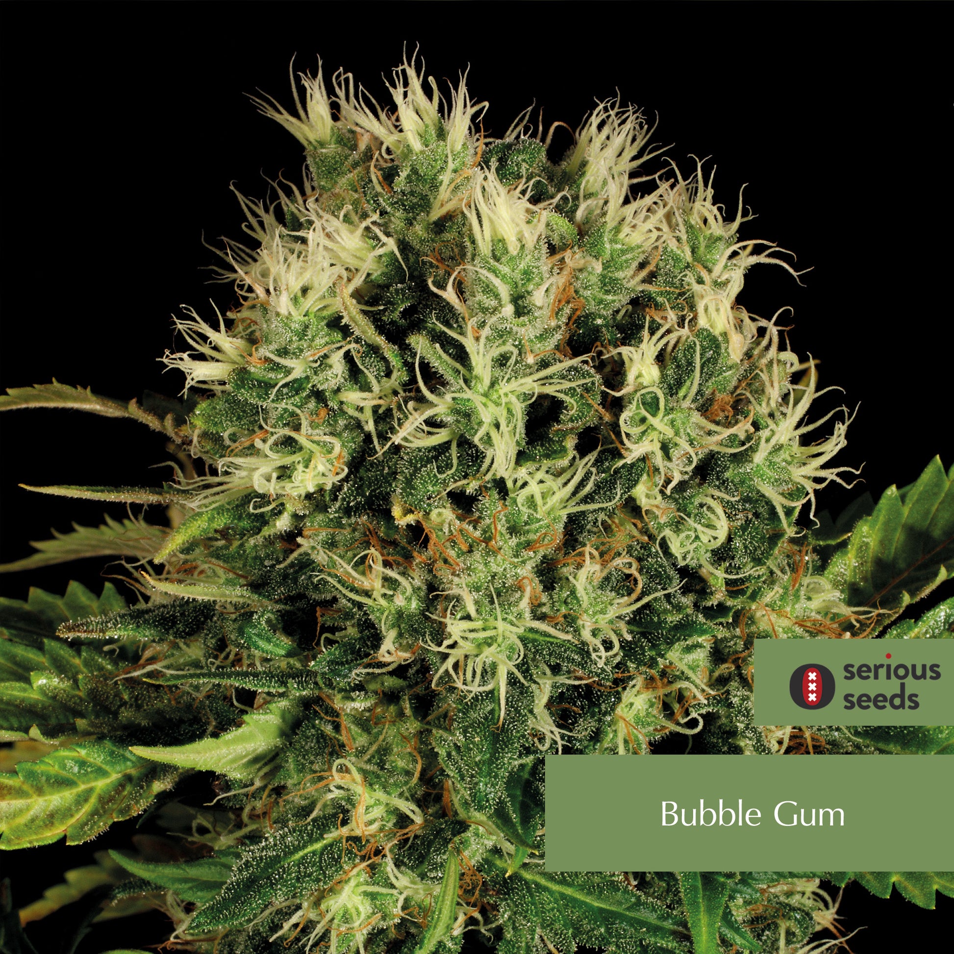 Legendary for its bubblegum sweet smell and euphoric high the Bubble Gum strain grows into a medium tall plant, usually not too branchy (sometimes tall) and produces compact, crystal covered buds. Plants grown from seeds are very similar to one another. Originally the Bubblegum strain was developed by growers in Indiana, USA. Later this Indiana Bubblegum genetics came to the Netherlands and were given to two different seed companies. Each created their own ‘original Bubble Gum strain’ from that genetic material. The Serious Seeds Bubble Gum is more sativa like in looks and effect, a sturdy and strong plant, with the characteristic, sweet smell (truly resembling a typical bubble gum taste) and euphoric high; the original trademarks of this famous strain. The only inbred strain (not a F1 hybrid) on the Serious menu. Bubble Gum has won 13 awards in High Times Cannabis Cups and similar festivals. In 2004 and 2005 it won 5 local and national Cups in Spain alone! In 2006 the Bubble Gum received its best award; it was named ‘Plant of the year’ by magazine ‘Soft Secrets’, because many Spanish growers won in local competitions in that year with the same plant: Bubble Gum. In September 2016 the feminized seeds of Bubble Gum have won the third place in the category Sativa at the Expogrow-Cup 2016 in Irun, Spain. The legendary sweet strawberry flavor of this variety is well pronounced in plants grown from feminized seeds! The Bubble Gum is the motherplant of the legendary Strawberry-Banana produced by Crockett Family Farms. In November 2018 an extract from Bubble Gum made by Nectars Collective has won the FIRST place in the category Hybrids at the 4th annual Jack Herer-Cup in Las Vegas, USA.