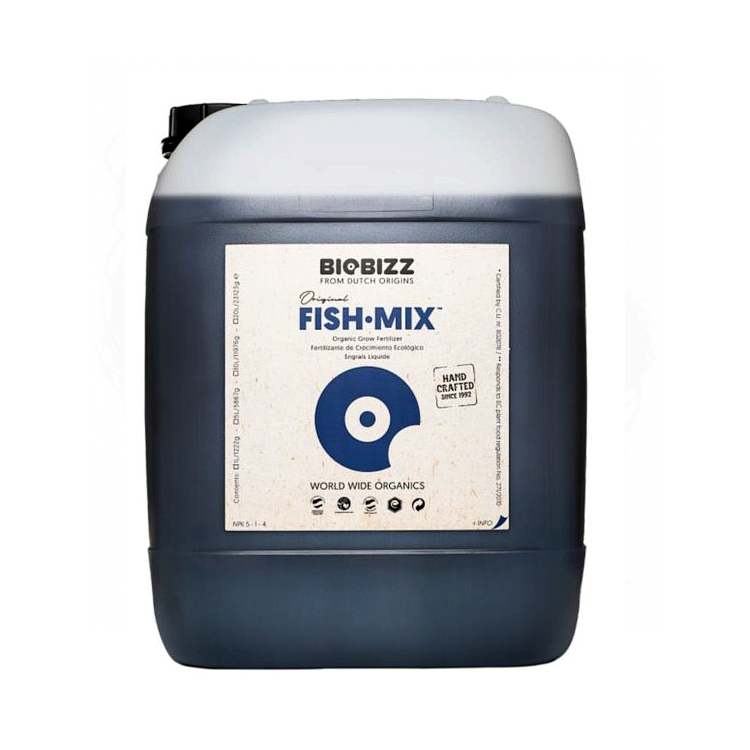 What is Fish·Mix?This rich infusion of organic fish emulsion from the North Sea, mixed together with extract of 100% organic Dutch sugar beet, helps accelerate the growth of all living organisms in the substrate. It also stimulates the production of microorganisms and useful bacteria in all types of soil and coco-based substrates. And it’s good to know that, in keeping with our strict organic farming requirements, Fish·Mix is not extracted with acids or stabilised with BHT (butylated hydroxytoluene) – a synthetic preservative. How to use it?You can use Fish·Mix on all kinds of plants during the first stages of growth, and during the flowering period until harvest. After a few days of use, it will have transformed poor quality earth into rich, fat soil – full of the natural minerals your plants are hungry for. It’s also mild enough to be used in the first stages of a plant’s life or sprayed directly onto leaves during the vegetative growing cycle. If you want to use Fish·Mix with your All·Mix then our advice is to measure a 1ml dose of Fish·Mix per litre of water. For Light·Mix, increase the amount to 2-4ml per litre of water. Follow our official Nutrient Schedule for the best results.