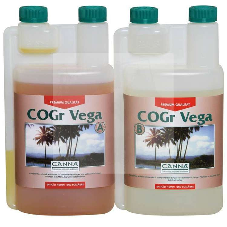 Dosage: Add to the tank CANNA COGr Vega, with a solution ratio of 1:250 ( 40ml A and 40ml B per 10L of water) |