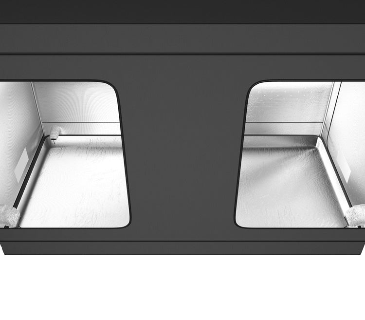 Galaxyfarm grow tents feature a sturdy metal frame with 16mm diameter tubes and durable plastic connectors. Each model includes an additional removable floor, making it easier to keep the grow area clean. The interior is lined with MYLAR Diamond 210D, a highly reflective material with a diamond structure, capable of reflecting up to 95% of light, ensuring optimal illumination for plants. The dark gray exterior gives the tent a sleek and professional look.