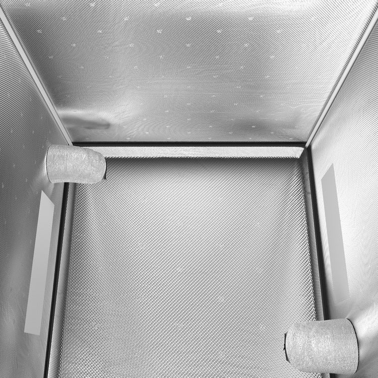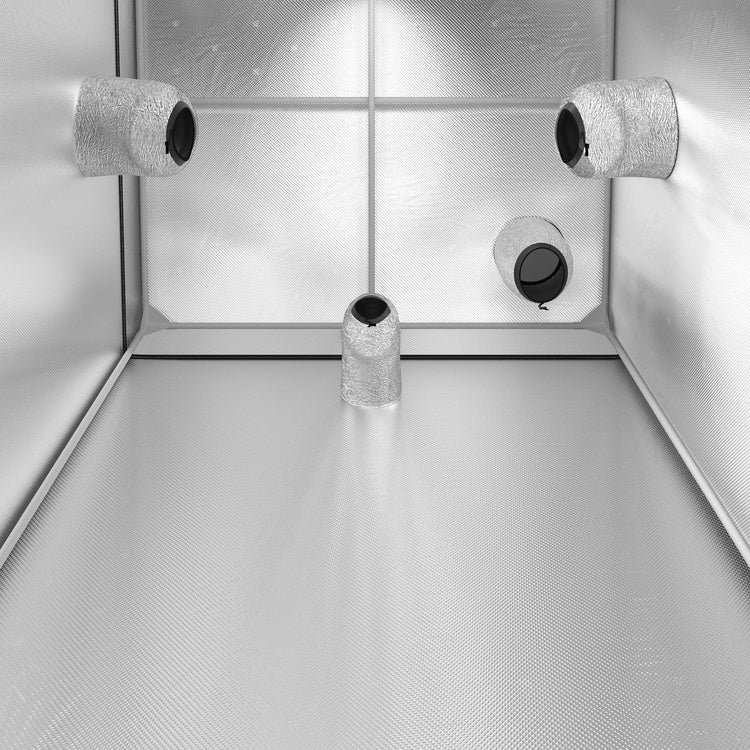 Galaxyfarm grow tents feature a sturdy metal frame with 16mm diameter tubes and durable plastic connectors. Each model includes an additional removable floor, making it easier to keep the grow area clean. The interior is lined with MYLAR Diamond 210D, a highly reflective material with a diamond structure, capable of reflecting up to 95% of light, ensuring optimal illumination for plants. The dark gray exterior gives the tent a sleek and professional look.