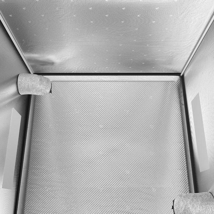 Galaxyfarm grow tents feature a sturdy metal frame with 16mm diameter tubes and durable plastic connectors. Each model includes an additional removable floor, making it easier to keep the grow area clean. The interior is lined with MYLAR Diamond 210D, a highly reflective material with a diamond structure, capable of reflecting up to 95% of light, ensuring optimal illumination for plants. The dark gray exterior gives the tent a sleek and professional look.
