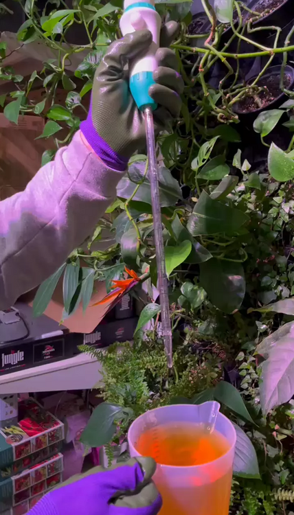 4. Point the pipette at the selected location (roots, leaves, pot) and precisely dose the required amount of liquid