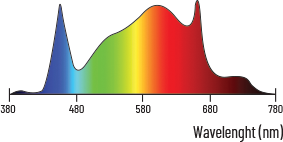 A number of LEDs create an even distribution of light at a short distance from the crop, allowing good penetration of the canopy without flashpoints and excessive heat. The innovative heatsink and the use of passive natural convection eliminated the need for a fan, reducing noise levels and significantly increasing the life of the device, as there are no moving parts.