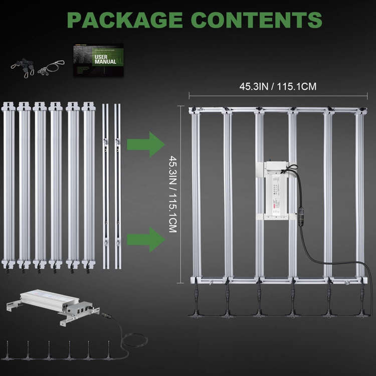 - Innovative Detachable Designs – Both the light bar and power supply are removable to allow for easy installation and DIY for growers who want to build their own lighting footprint. By setting the light bar at the recommended locations (marked by green arrows), growing lighting can be most evenly distributed, resulting in the most consistent crops grown.