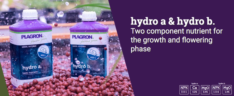 Hydro A & B is a strongly concentrated basic biomineral fertilizer that is used in the growth and flowering phase of the plant. This unique liquid preparation contains many trace elements in a high-valued chelated form (DTPA). As a result, the plant can be optimally developed even if the pH value is different than the ideal or the substrate temperature is too low. This fertilizer can be used for all types of inert substrates.