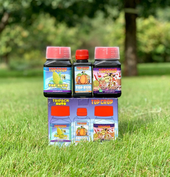 Top Crop's TriPack Auto contains everything you need to care of your autoflowering plants, from growth to flowering, ending up with voluminous resin-filled buds. TriPack Auto includes: